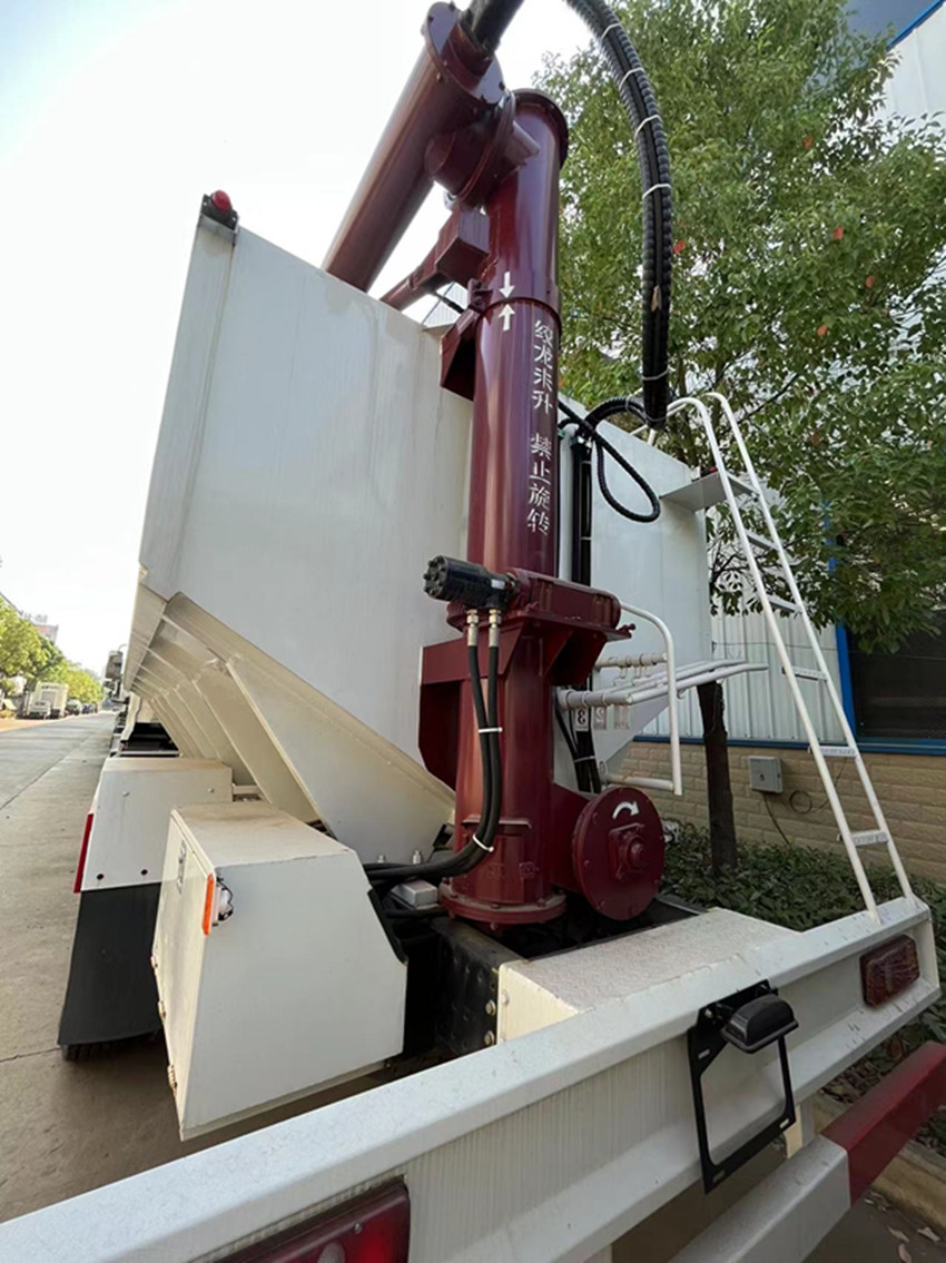 可獨立控制各分倉卸料順序和速度,整車3條蛟龍(底部水平絞龍、尾部垂直絞龍、頂部卸料絞龍),由取力器經車輛變速箱取力后,將動力傳動至高壓油泵以驅動液壓系統(tǒng)帶動各絞龍工作,或者由3個5.5kw 380v電機帶動各絞龍工作,頂部絞龍液壓控制舉升,可左右旋轉180°此車公告+環(huán)保+燃油齊全,全國上戶無憂!