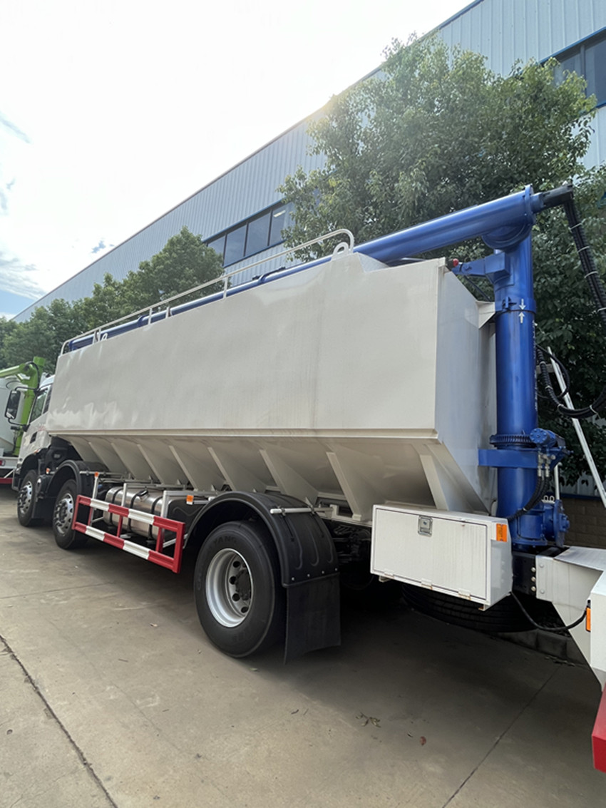 可獨立控制各分倉卸料順序和速度,整車3條蛟龍(底部水平絞龍、尾部垂直絞龍、頂部卸料絞龍),由取力器經(jīng)車輛變速箱取力后,將動力傳動至高壓油泵以驅(qū)動液壓系統(tǒng)帶動各絞龍工作,或者由3個5.5kw 380v電機帶動各絞龍工作,頂部絞龍液壓控制舉升,可左右旋轉(zhuǎn)180°此車公告+環(huán)保+燃油齊全,全國上戶無憂!